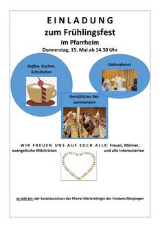 | MARP Pfarrheim | 14:30 | Seniorenmesse mit Frühlingsfest |