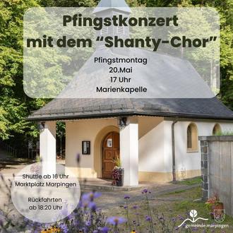 Der über den Kreis St. Wendel hinaus bekannte Shanty Chor veranstaltet am Pfingstmontag ein Pfingstkonzert an der Marienkapelle. Der Beginn ist um 17 Uhr. Wie auf dem beigefügten Bild zu ersehen ist, wird eine Transportmöglichkeit angeboten.