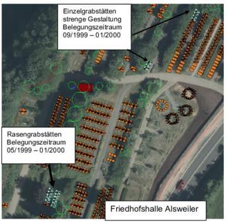 Für 11 Rasengrabstätten aus dem Belegungszeitraum von Mai 1999 bis Januar 2000 und für 7 Einzelgrabstätten aus dem Belegungszeitraum von September 1999 bis April 2000 ist die Einebnung ab Juli 2025 vorgesehen.
