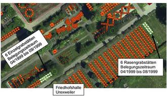 Für 6 Rasengrabstätten aus dem Belegungszeitraum von April 1999 bis August 1999 ist die Einebnung ab September 2024 vorgesehen.