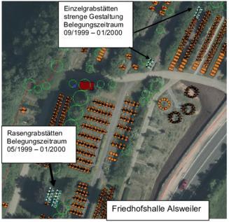 Für 11 Rasengrabstätten aus dem Belegungszeitraum von Mai 1999 bis Januar 2000 und für 7 Einzelgrabstätten aus dem Belegungszeitraum von September 1999 bis April 2000 ist die Einebnung ab Juli 2025 vorgesehen.