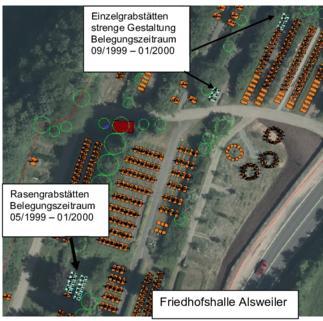 Für 11 Rasengrabstätten aus dem Belegungszeitraum von Mai 1999 bis Januar 2000 und für 7 Einzelgrabstätten aus dem Belegungszeitraum von September 1999 bis April 2000 ist die Einebnung ab Juli 2025 vorgesehen.
