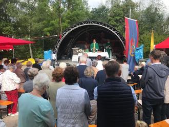 Am Sonntagmorgen feierten die Feuerwehr mit ihren Gästen eine Heilige Messe, die von Pastor Volker Teklik und Diakon Wolfgang Schu feierlich gestaltet wurde. Die Jugendfeuerwehr stellte die Messdiener.