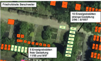 Somit ist für 10 Einzelgrabstätten mit strenger Gestaltung aus dem Belegungszeitraum Februar 1996 bis August 1997 und 5 Einzelgrabstätten freier Gestaltung aus dem Belegungszeitraum November 1995 bis September 1997 eine Einebnung ab Oktober 2022 vorgesehen.