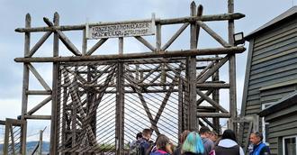 Die Schülergruppe am Eingang des ehemaligen KZ