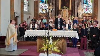 Am Sonntag fand das diesjährige Pfarrfest unserer Pfarrgemeinde St. Franziskus statt. In diesem Jahr konnten wir ein besonderes Jubiläum feiern – 110 Jahre Pfarrkirche St. Franziskus. Anlässlich dieses Jubiläums hat Andreas Burg eigens eine Messe komponiert, die im festlichen Hochamt uraufgeführt wurde. Mehr als 40 Musikerinnern und Musiker, ein eigens zusammengestelltes Orchester sowie ein Projektchor haben über Monate diese Messe eingeübt und die zahlreichen Besucher der Messe verzaubert. Zahlreiche Gänsehautmomente und „Standing Ovations“ waren das Ergebnis und unser Dank an diese tolle Messe. Manch einer ist der Meinung, dass dies sogar ein eigenes Konzert wert wäre. Wer weiß, was Andreas Burg noch vorhat.