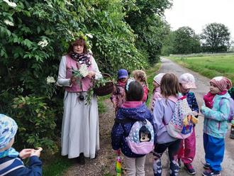 Ende Mai machten sich auch die diesjährigen Wackelzähne gemeinsam mit der Kräuterhexe auf den Weg zu den umliegenden Wiesen und Wäldern.