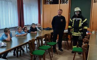 Zudem konnten die Kinder einiges über die Ausrüstung und die Aufgaben der Feuerwehrleute erfahren.