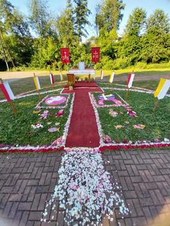 Das Bild erinnert stellvertretend für vieles andere an den diesjährigen Fronleichnamstag in Alsweiler und die vielen Mitchristen, die sich auch diesmal wieder um unser Fronleichnamsfest verdient gemacht u. mit ihrem Einsatz u. Fleiß dem Tag seine ausgeprägt festliche Note verliehen haben.