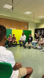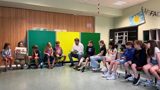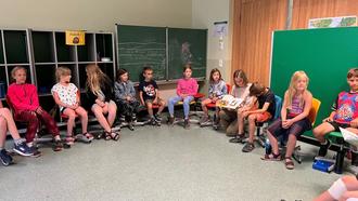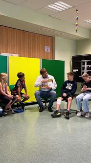 Alle Kinder hörten Bürgermeister Volker Weber in den 30 Minuten gespannt zu. Mit dabei war auch Schoolworkerin Alisa Müller. Nach der gelungenen Buchlesung tauschte sich Volker Weber mit den Mädchen und Jungs über die Spielplätze der Gemeinde aus. Es wurde aber auch rege darüber diskutiert, wie es als Klassensprecher:in bzw. Schulsprecher ist. Die Kinder erzählten dem Bürgermeister zum Beispiel, dass sie es „cool“ finden Klassensprecher:in zu sein, da man so anderen Personen helfen kann. Dennoch sei es manchmal auch schwierig, wenn es z.B. Streit gibt und sie die Lehrkraft hinzuholen müssen oder sie sich aufgrund des Handelns unbeliebt machen und die Mitschüler deswegen dann sauer auf sie sind.