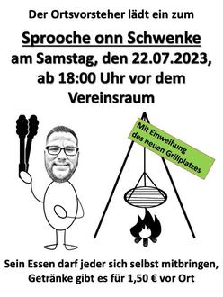 Am morgigen Samstag findet das nächste ‚Sprooche onn Schwenke‘ vor dem Vereinsraum in OX Weiler statt. Wir wollen hierbei die Gelegenheit nutzen, unsere neuen Grillplatz offiziell einzuweihen. So wollen wir uns wie bekannt in lockerer Runde treffen und einen schönen gemeinsamen Abend miteinander verbringen, uns austauschen und über die kleinen oder größeren Dinge im Ort reden. Das Format ‚Sprooche onn Schwenke‘eignet sich hervorragend zur Einweihung des Grillplatz. Ist diese bewusst zwanglose Veranstaltung sorgt für das passende Ambiente.