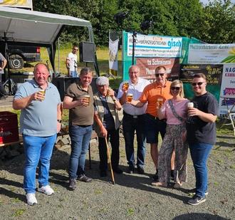 Andre Fink, der Vorsitzende des ASV Alsbach, Herr Paulus, Vertreter der Bitburger-Brauerei, Ehrenmitglied Anton Brill, ich, German Ecket, Rene Rohner, 1. Beigeordneter der Gemeinde Marpingen, Landgasabgeordnete Nadja Schindelhauer, Ortsrat Ruben Henschke.