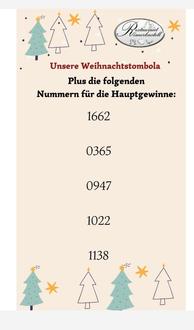 Noch wurden nicht alle Gewinne abgeholt. Schaut also nochmal nach Euren Losen. Gerne können die Gewinne während den Öffnungszeiten im Restaurant Römerkastell abgeholt werden.