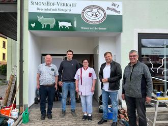 Das Bild zeigt den gemeinsamen Besuch mit unserem Bürgermeister Volker Weber mit der Familie Wagner (Betreiber des Automats und Eigentümer des SimonsHof) während dem Aufbau des neuen Automats.