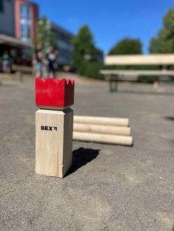 Am vergangenen Wochenende fand das diesjährige Wikingerschachturnier der Hanjobs Dorfkultur im Brühl statt. Vielen ist dieses Spiel vielleicht eher bekannt als Kubb. Es handelt sich hierbei um ein Geschicklichkeitsspiel, das vorrangig auf Rasen gespielt wird. Aber auch unser Bouleplatz mit dem Braschebelag eignet sich hervorragend hierfür. Bei Kubb treten zwei Mannschaften gegeneinander an. Eine Mannschaft besteht aus mindestens einer bis maximal sechs Personen. Die Spieler versuchen, jeweils die Holzklötze (Klotz=Kubb) der Gegenpartei mit Wurfhölzern umzuwerfen. Der König, der in der Mitte des Spielfelds steht, muss zuletzt getroffen werden. Wer zuerst alle Kubbs auf des Gegners Spielhälfte und den König getroffen hat, gewinnt das Spiel. Wikingerschach ist ein Spiel, das immer mehr Mitstreiter aller Generationen findet.