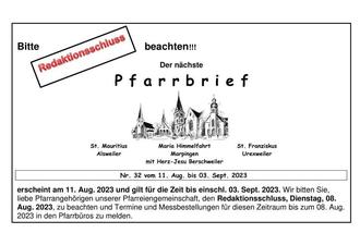 | Montag | 14.08. | Kirmesmontag; Hl. Maximilian Maria Kolbe, |