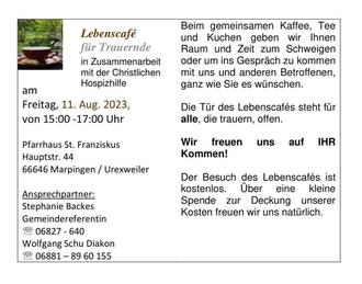 | ALSW | 14:30 | Sterbeamt u. Beerdigung v. Heribert Schnur |