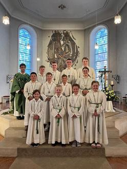 Am letzten Samstag vor den Ferien konnten wir uns darüber freuen, dass wir vier neue Messdiener feierlich in ihren neuen Dienst einführen konnten. Wir heißen Clara Dewes, Lotta Brill, Sophia Schreiner und Finn Kuß ganz herzlich im Kreise der Alsweiler Messdiener willkommen! Herzlichen Dank an Luca Schmidt und Simon Marx, die zusammen mit Pf. Breininger die Mädchen und Jungen auf ihre neuen Aufgaben vorbereitet haben. Danke auch an all die anderen Messdiener, die ebenfalls unsere Liturgie bereichern.