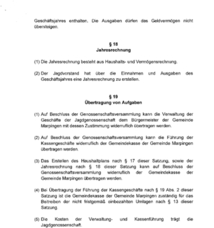 Nächster Artikel: Satzung der Jagdgenossenschaft Urexweiler