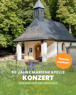 Anlässlich des 90-jährigen Bestehens der Marienkapelle lädt die Gemeinde Marpingen herzlich zu einem stimmungsvollen Konzert am Sonntag, den 24. August 2025, in den idyllischen Härtelwald ein.