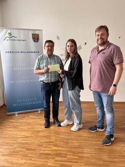 Die Spende in Höhe von 300 € überreichte Werner Laub, im Beisein unseres Bürgermeisters Volker Weber, an Jil Kirsch. Das Spendengeld wird zur Unterstützung des Flüchtlingsnetzwerks und deren Arbeit beitragen.
