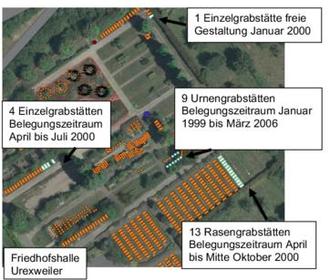 Für 13 Rasengrabstätten aus dem Belegungszeitraum von April bis Mitte Oktober 2000, 1 Einzelgrab mit freier Gestaltung vom Januar 2000, 4 Einzelgrabstätte mit strenger Gestaltung aus dem Belegungszeitraum April bis Juli 2000 und 9 Urnengrabstätten mit Belegungszeitraum Januar 1999 bis März 2006 werden nach Ablauf der Mindestruhezeit im Oktober 2025 eingeebnet.