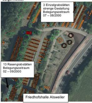 Für 13 Rasengrabstätten aus dem Belegungszeitraum von Februar bis September 2000 und für 3 Einzelgrabstätten aus dem Belegungszeitraum von Juli bis August 2000 ist die Einebnung ab 1. Oktober 2025 vorgesehen.