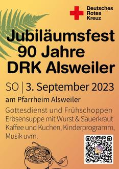 Wir laden Euch recht herzlich ein zu unserer Jubiläumsfeier zum 90-jährigen Bestehen des DRK Ortsvereins Alsweiler am 03. September im Pfarrheim.