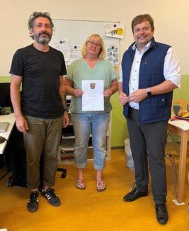 In der vergangenen Woche durfte ich innerhalb unseres Kollegiums Glückwünsche überbringen: Isabelle Rauber, Koordinatorin und Erzieherin in unserem Kinderhaus, feierte ihr 25-jähriges Dienstjubiläum. Wir sind sehr dankbar, eine so engagierte und verlässliche Mitarbeiterin seit vielen Jahren in unseren Reihen zu wissen. Es war mir eine besondere Freude und Ehre, ihr die Urkunde zusammen mit Andreas Mayer, dem Leiter des Kinderhauses, zu diesem Anlass überreichen zu dürfen, da ich mit Isabelle seit vielen Jahren sehr gut und vertrauensvoll zusammenarbeite.