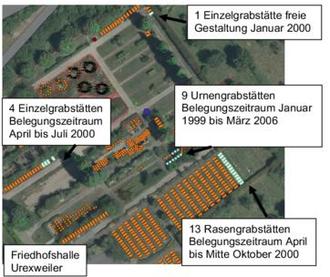 Für 13 Rasengrabstätten aus dem Belegungszeitraum von April bis Mitte Oktober 2000, 1 Einzelgrab mit freier Gestaltung vom Januar 2000, 4 Einzelgrabstätte mit strenger Gestaltung aus dem Belegungszeitraum April bis Juli 2000 und 9 Urnengrabstätten mit Belegungszeitraum Januar 1999 bis März 2006 werden nach Ablauf der Mindestruhezeit im Oktober 2025 eingeebnet.