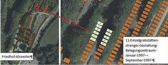 Für 11 Einzelgrabstätten mit strenger Gestaltung aus dem Belegungszeitraum von Januar bis September 1997 ist eine Einebnung für Mitte September 2022 vorgesehen.