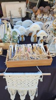 Das herrliche Wetter und das tolle Ambiente vor Ort hat viele Besucherinnen und Besucher zum Verweilen eingeladen. Rund 20 Kunsthandwerker, größtenteils aus unserer Gemeinde aber auch aus dem ganzen Saarland, haben sich zudem mächtig in Zeug gelegt und ihre selbstgemachten Waren angepriesen. Für jeden Geschmack war etwas dabei: Arbeiten aus Ton, Holz, Honig und Seifen aus eigener Herstellung, Acrylmalerei, Glas- und Silberschmuck, Genähtes, Filzarbeiten und vieles mehr.