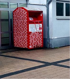 Wie ihr sicherlich mitbekommen habt, laufen die Planungen für den Umbau der alten Grundschule in ein Dorfgemeinschaftshaus. Hierfür muss das Gebäude natürlich entsprechend geräumt werden. Betroffen davon ist ebenfalls das Deutsche Rote Kreuz, die bereits mit ihrer Kleiderkammer umgezogen sind. Nun war es wichtig, noch einen neuen, geeigneten Standort für den Altkleidercontainer zu finden. In der vergangenen Woche wurde der Container umgestellt und steht nun rechts neben dem Haupteingang zur Mehrzweckhalle.