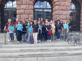 Am 06.09. hieß es für unsere Gruppe um kurz nach 8:00 Uhr: Abfahrt nach Mainz. Mit dem Zug machten wir uns auf den Weg, um gemeinsam einen spannenden Tag zu verbringen. Angekommen in Mainz starteten wir direkt mit einer langen Stadtführung, bei der wir viele interessante Informationen sammeln konnten. Vom Rhein über den Mainzer Dom bis hin zu kleinen versteckten Details bekamen wir alles zu sehen.