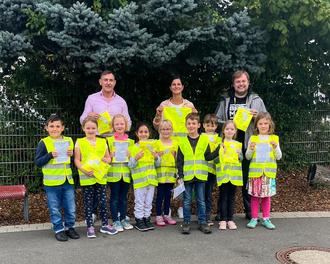 Die Saarland Versicherung hat dazu insgesamt 90 Warnwesten und für jedes Kind einen Eisgutschein gesponsert.