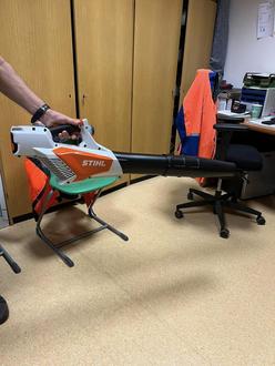 Darüber hinaus wurde auch in einen neuen akkubetriebenen Laubbläser (rund 400 €) investiert. Dieser ist deutlich leiser und kann auch während der Schulzeit somit besser eingesetzt werden.