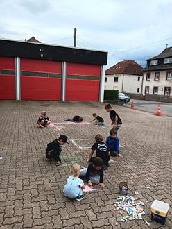 In der letzten Löschbiber Übung malten wir als Gemeinschaftsprojekt zusammen ein großes Feuerwehrauto. Mit dieser Teamaufgabe können die Löschbiberkids das,,Kinderflämmchen" Abzeichen erreichen????