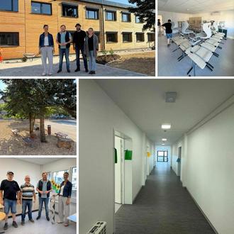 Am Montag durften die Erstklässler endlich die neuen Räume des modularen Erweiterungsbaus an der Grundschule beziehen, nachdem am Samstag zuvor die letzten Arbeiten abgeschlossen wurden. Unter anderem hatte der Bauhof die Möbel in die Klassenräume gebracht, während die Lehrkräfte die Räume liebevoll dekorierten und für den Unterricht vorbereiteten. Die Spielgeräte im Außenbereich werden noch installiert. Gemeinsam mit dem Architekten Dirk Noss, der künftigen Bauamtsleiterin Olga Schirra, unserem Hausmeister Stefan Markowski, dem stellvertretenden Ortsvorsteher Martin Gessner und der Schulleiterin Sabina Molaen konnte ich einen Eindruck des fertiggestellten Baus gewinnen. Der Erweiterungsbau ist wirklich schön geworden und kann sich innen und außen absolut sehen lassen. Danke an alle Beteiligten für die sehr gute Arbeit. Rund 2,2 Millionen Euro werden am Schluss für unseren Bildungsstandort investiert worden sein. Hier ein besonderer Dank an Innenminister Reinhold Jost und Staatssekretär Torsten Lang für die hervorragende Unterstützung. Mehr als 1 Millionen Euro an Fördermittel haben wir aus dem Innenministerium für dieses Projekt erhalten.