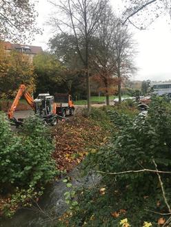 Zur Sicherheit und zur Hochwasservorsorge wurden in diesem Bereich auch noch Bäume gefällt. Die Arbeiten sind noch im Gange.