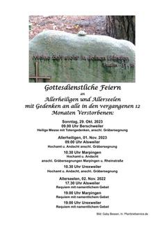 | BERSCH | 09:00 | Hl. Messe mit Totengedenken f. d. seit Nov. 2022 Verstorbenen aus Berschweiler: |