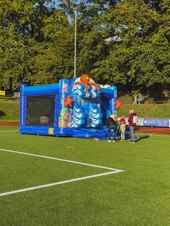 Nach der Eröffnung ging es dann auch schon los mit den verschiedenen Disziplinen für das Sportabzeichen. Die unterschiedlichen Stationen wurden von den Schüler:innen der Klasse 11 der Gemeinschaftsschule Marpingen betreut. Außerdem wurden noch weitere wettbewerbsfreie Stationen, wie Sackloch, Gummistiefel Weitwurf und vieles mehr angeboten. Auch eine Hüpfburg gab es vor Ort.