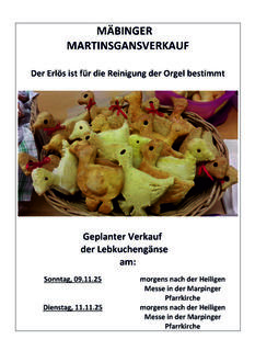 Nach dem erfolgreichen Resümee aus unserem Laxemverkauf, bei dem wir 437,00 Euro für die Orgelreinigung spenden konnten, möchte sich die Mäbinger DJK-Clique noch mit einem weiteren Event für diesen Zweck engagieren und würde sich über einen regen Kauf unserer selbstgebackenen Lebkuchengänse sehr freuen.
