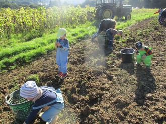 Am 26.09. haben sich die Großen aus der Koalabärengruppe und die Schlaufüchse auf den Weg zur Kartoffelernte gemacht. Gemeinsam besuchten wir Luis und Merles Opa an seinem Kartoffel-Acker in Alsweiler.