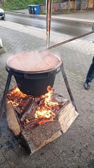 Eine weitere tolle Tradition, die einige wackere Bewohnerinnen und Bewohner der Knoppstraße aufrechterhalten, ist das Laxemkochen. Dabei werden bei uns in Urexweiler standesgemäß Birnen verwendet. Auch unser Ortsvorsteher Christian Bost hat den Ertrag seines Birnenbaums abgegeben, damit genug eingekocht werden konnte. Das war wieder ein tolles Erlebnis und eine Stärkung der Gemeinschaft. Vielen Dank an Gido Schirra und sein Team von der Knoppstraße, die von früh morgens bis spät in die Nacht im Einsatz waren.