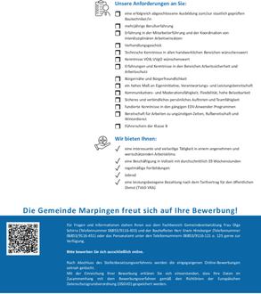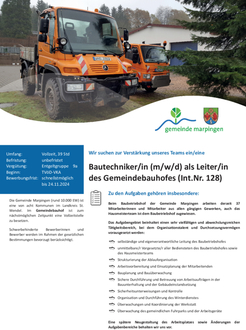 Stellenanzeige Bautechniker/in (m/w/d) als Leiter/in des Gemeindebauhofes