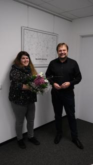Ich gratuliere ebenfalls unserer Mitarbeiterin Laura Ehre. Sie hat von Januar 2021 bis September 2022 erfolgreich den Angestelltenlehrgang 1 bei der Saarländischen Verwaltungsschule abgelegt. Für die Gemeinde Marpingen arbeitet Laura seit dem ersten Oktober 2016 und wurde zuerst im Fachbereich Gemeindeentwicklung eingesetzt. Im Oktober 2018 wechselte Sie zum Fachbereich Finanzen und arbeitet seitdem auf der Gemeindekasse. Zurzeit wird Laura auch noch im Bereich Schule, Kindergarten, Hort und Freiwillige Ganztagsschule eingearbeitet, denn ab Januar 2023 wird Sie im Fachbereich Zentrale Dienste tätig sein und dort noch die Bereiche ÖPNV und Sitzungsdienst übernehmen. Liebe Laura, auch dir herzlichen Glückwunsch zur bestandenen Prüfung und vielen Dank für dein bisheriges Engagement in der Verwaltung!