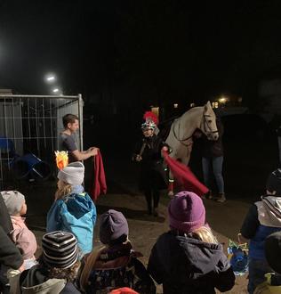 Erstmals führten die Kinder der Kita angeleitet von Pfarrerin Heike Schmidt ein kleines Schauspiel auf, um die Geschichte von St. Martin und der berühmten Mantelteilung darzustellen. Eine schöne Idee, die auch toll umgesetzt wurde.