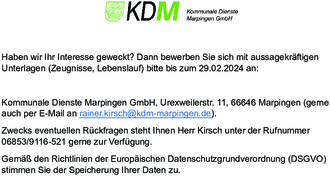 Stellenausschreibung KDM - Prokurist / Kaufmännischer Mitarbeiter