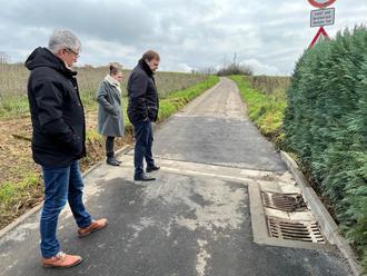 Zuvor lief das Wasser auch am eingebauten Schacht vorbei und wurde so nicht vom Kanal aufgenommen. Damit die sich ansammelnden Wassermassen bei Starkregen aus Richtung des Feldweges, zwischen der Hausnummer 24 und 26, nicht unkontrolliert auf der abschüssigen Straße herunterlaufe, wurden neue Regeneinlaufschächte gesetzt und eine Entwässerungsrinne zur Lenkung des Wassers angelegt. Weber sei zuversichtlich, dass im Starkregenereignisfall dies zur Abminderung von Schäden verhelfen könnte. Außerdem sei wegen des neuen Bordsteins, der gerne schnell von Radfahrern übersehen würde, noch geplant ein entsprechendes Verkehrsschild aufzustellen. Damit könnten Unfälle vermieden und die Sicherheit erhöht werden, betont der Bürgermeister.