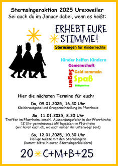 Die Sternsingeraktion von St. Franziskus Urexweiler findet am Sa, 11.01.2025 statt.